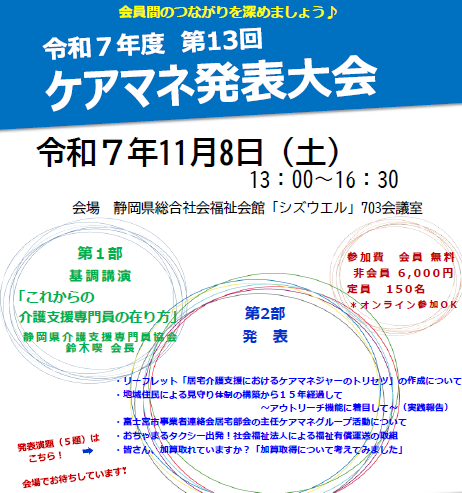 第13回静岡県ケアマネ発表大会 当日の参加 お申し込みについて