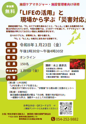【施設ケアマネジャー&施設管理者対象!】令和7年度施設ケアマネジメント研修「LIFEの活用」と現場から学ぶ「災害対応」★11月5日(水)~申込受付開始!